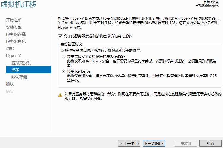 添加功能后点击下一步,之后三个页面都是默认下一步即可 到了迁移这里选择允许和第二个选项,之后点击下一步