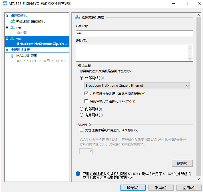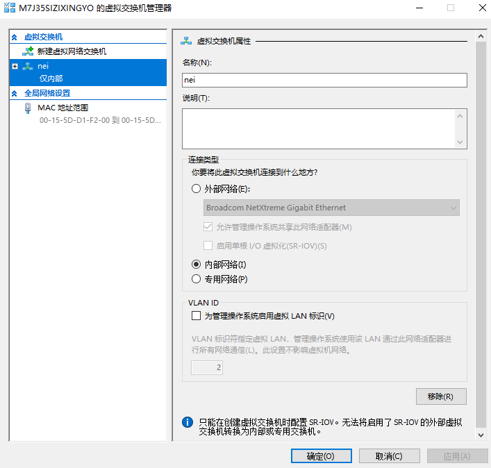 打开Hyper-V管理器,依次点击虚拟交换机管理器,新建内网、外网、nat 内网
