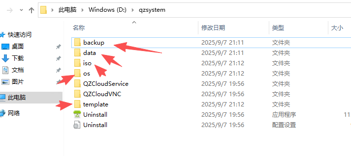 提前在轻舟的安装目录中创建文件夹iso、data、template、os、backup
