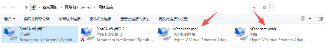 创建完成后在网络管理中会看到两个多出来的网卡,还有一个nat网卡