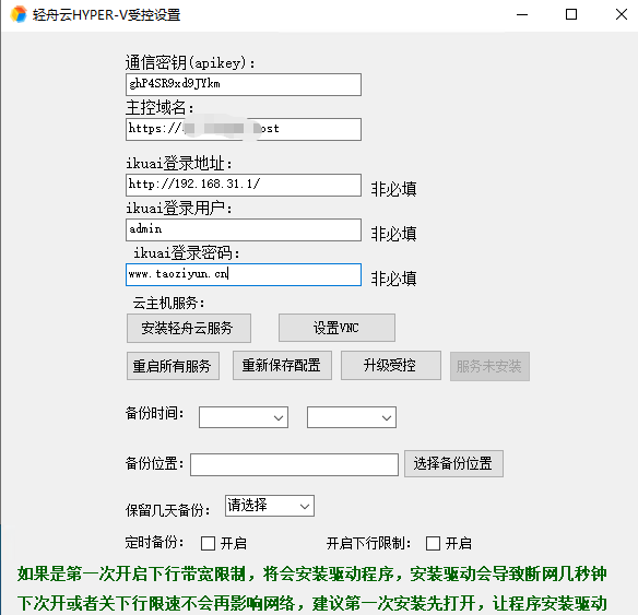 按照如上填写即可 密钥和登录密码按照你们设置的即可,之后点击安装轻舟云服务、VNC服务,都完成后重启所有服务,之后重新保存配置就完设置了。