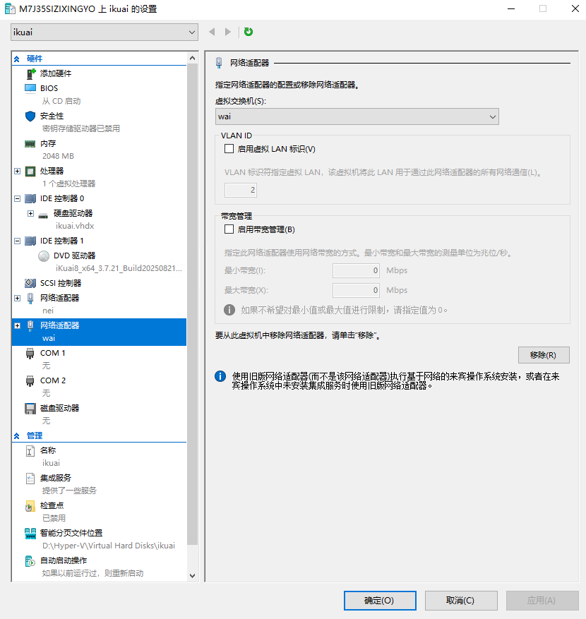 首先去官网下载最新镜像,下载好后使用Hyper创建虚拟机 安装ikuai8