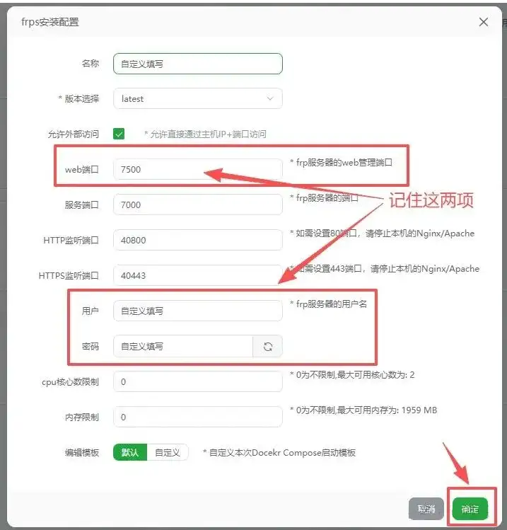 ⚠️ 注意:此处填写的所有端口(例如